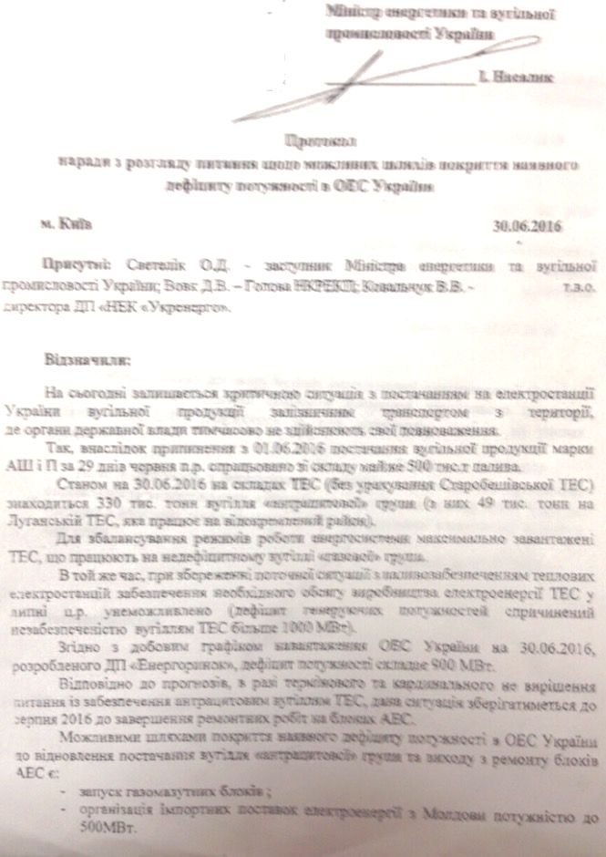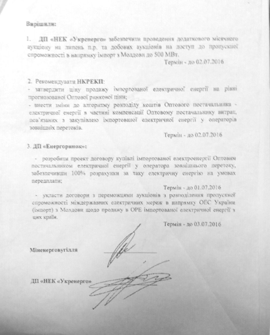 Согласно документу, имеющемуся в распоряжении редакции, Министерство энергетики и угольной промышленности поручило НЭК “Укрэнерго” провести дополнительный аукцион по доступу к пропускной способности межгосударственных линий электропередач для импорта электроэнергии из Молдовы в объеме до 500 МВт. НЭК “Укрэнерго” за 2 дня организовало аукцион, в котором приняли участие всего две компании ПАО “Донбассэнерго” и ООО “ТЭК”.